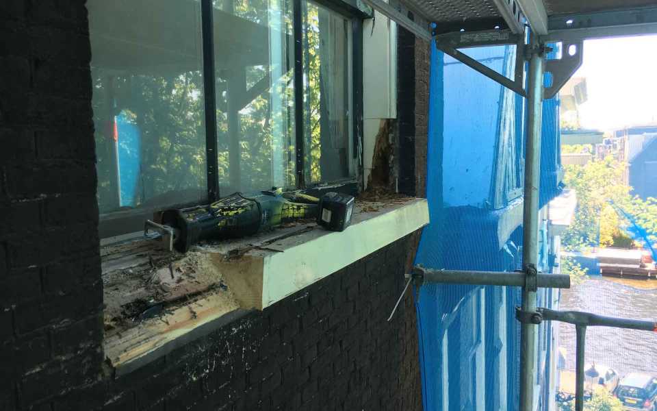 Groot onderhoud voor en achtergevel grachtenpand Amsterdam.